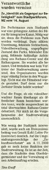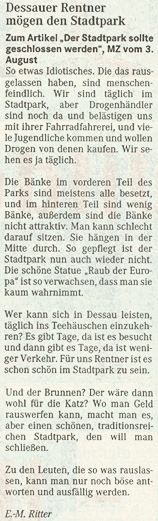 vom 10.08.01, erschienen in der Mitteldeutschen